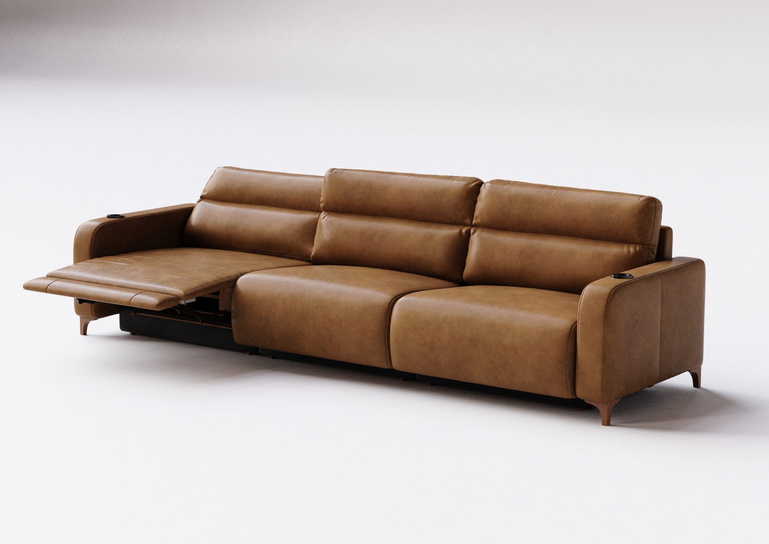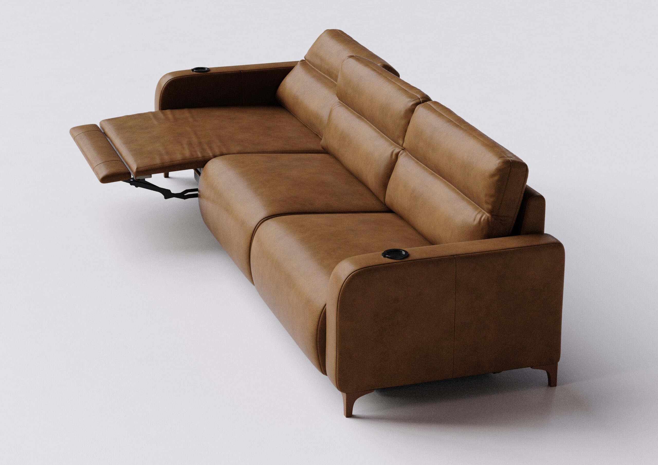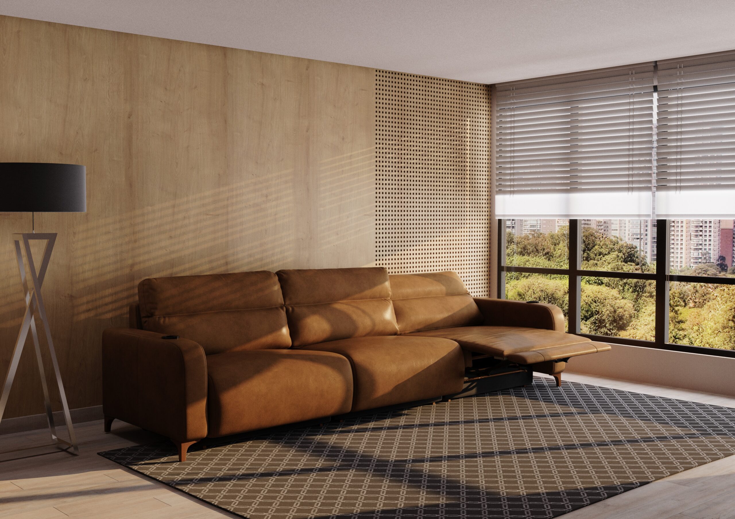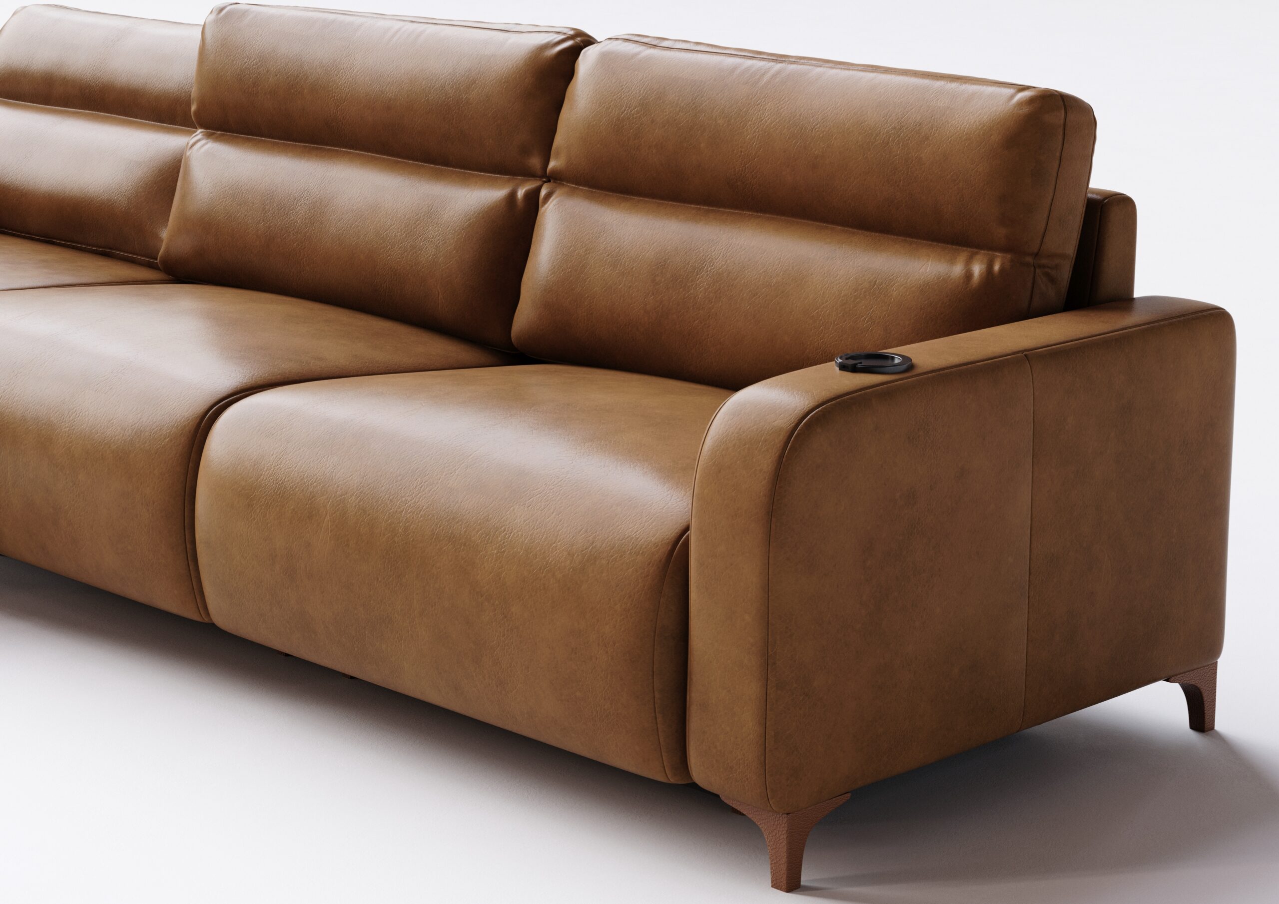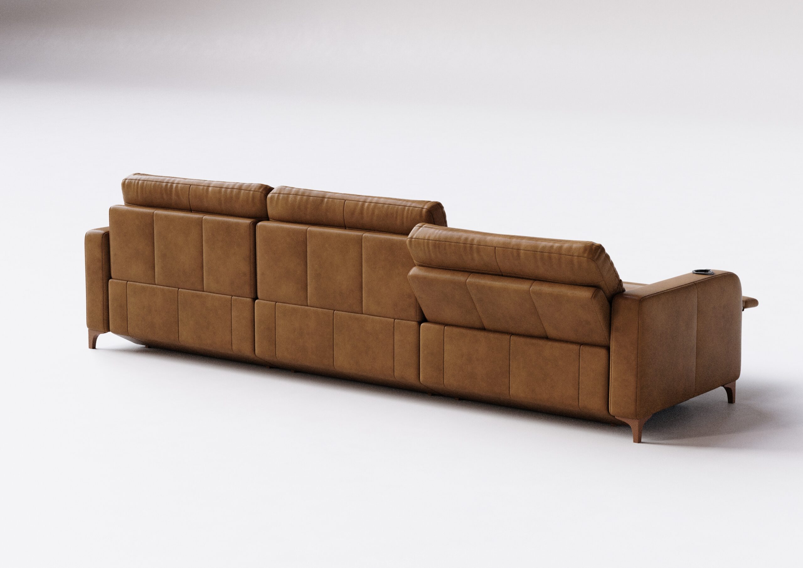 Seus comandos automáticos, o toque suave do couro e o porta-copos com resfriamento embutido unem praticidade e elegância, enquanto o acabamento refinado traduz toda a sofisticação da Buriti Estofados.