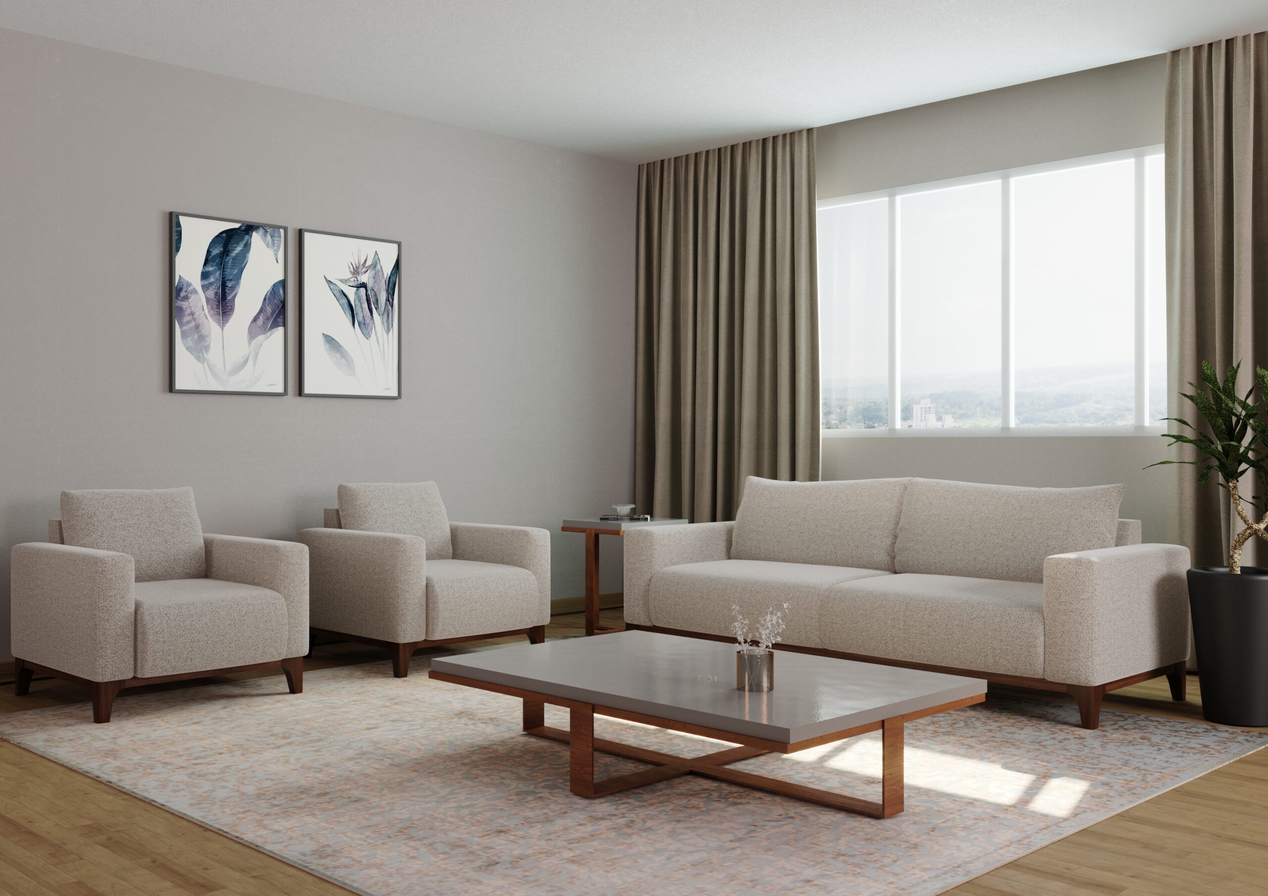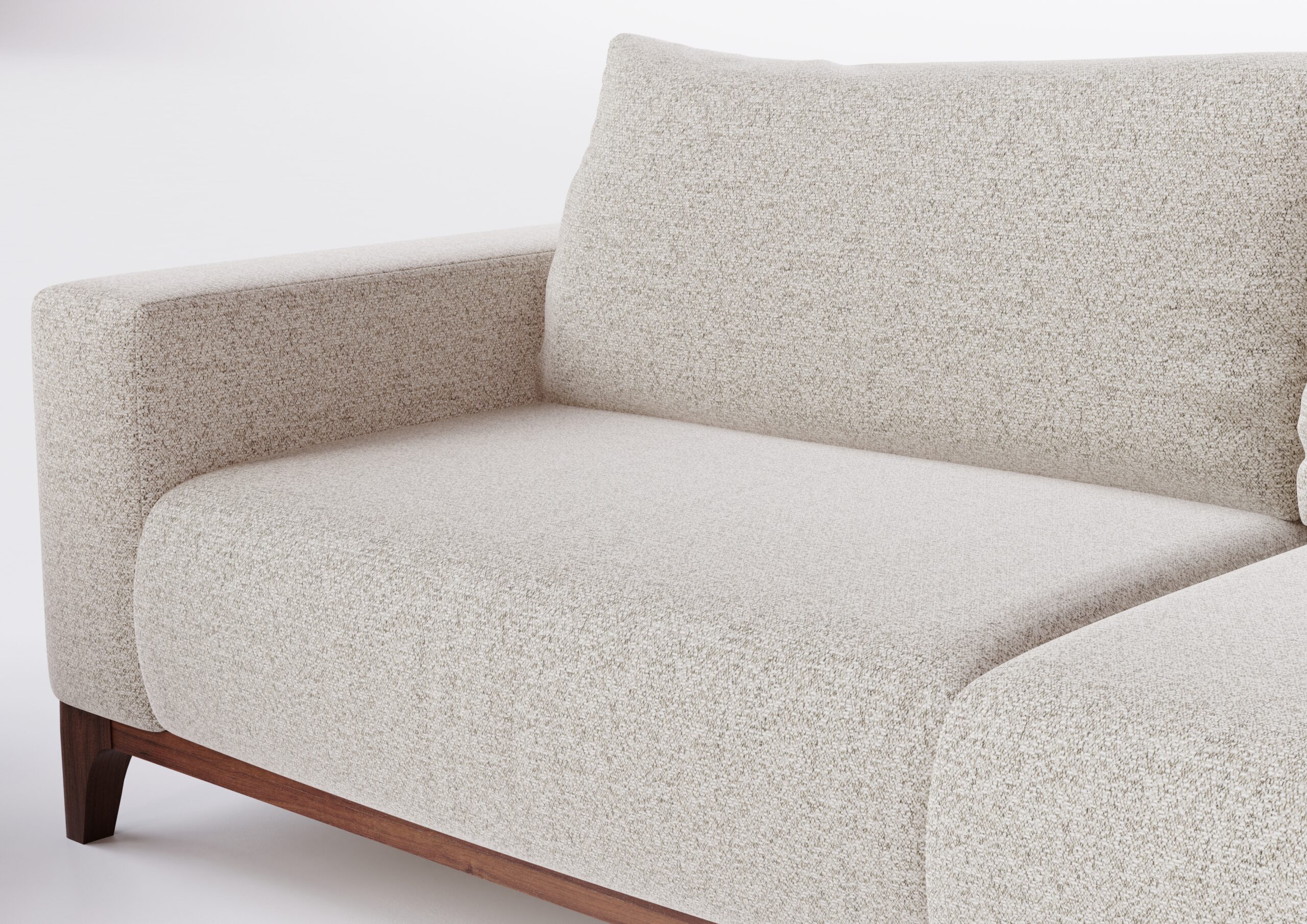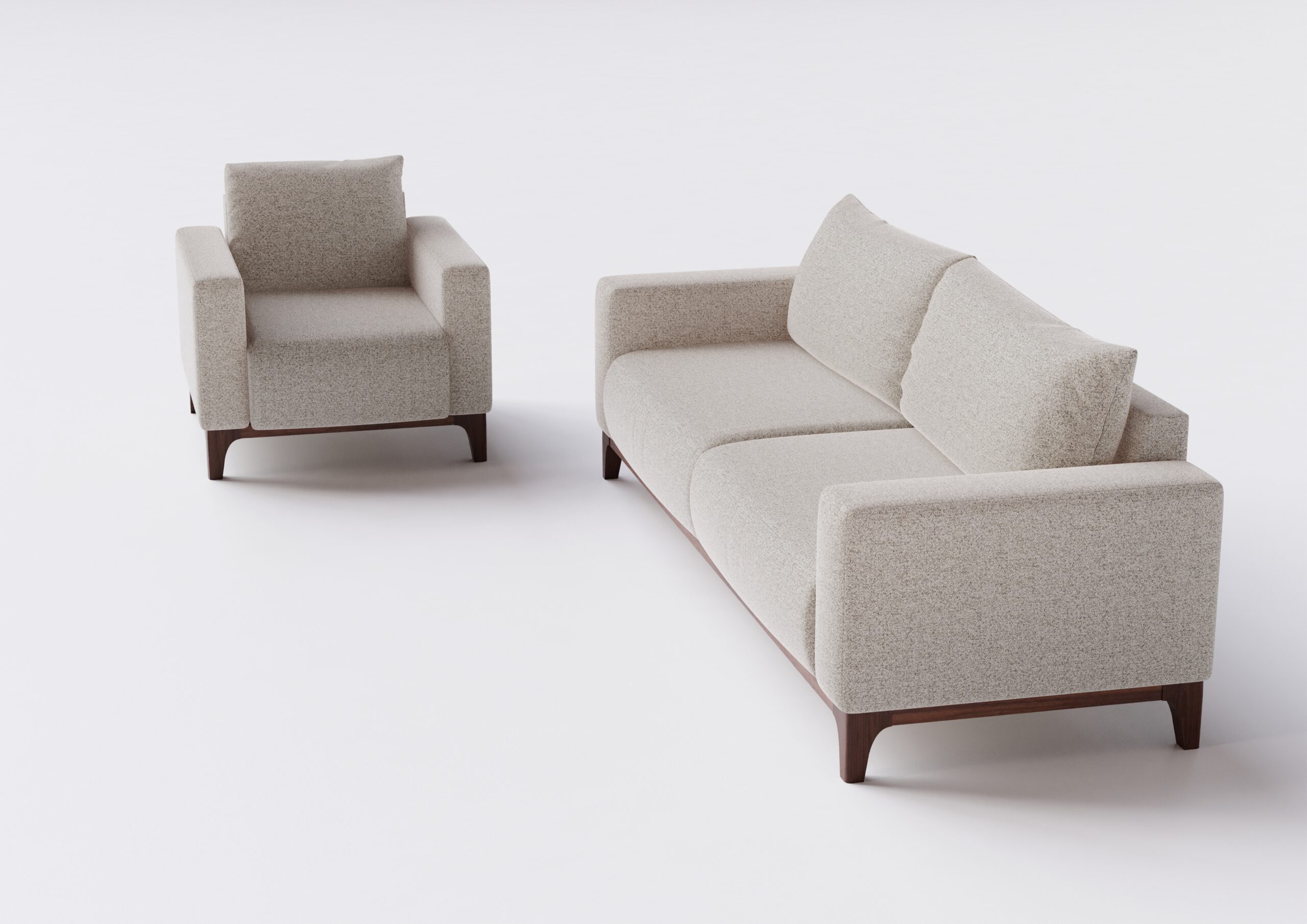 O Sofá Oregon traz linhas retas e uma estética limpa, ideal para ambientes modernos e contemporâneos. Sua estrutura robusta transmite solidez e conforto, enquanto os braços largos reforçam o visual imponente. A base em madeira aparente adiciona leveza e um toque natural ao conjunto, equilibrando o design.