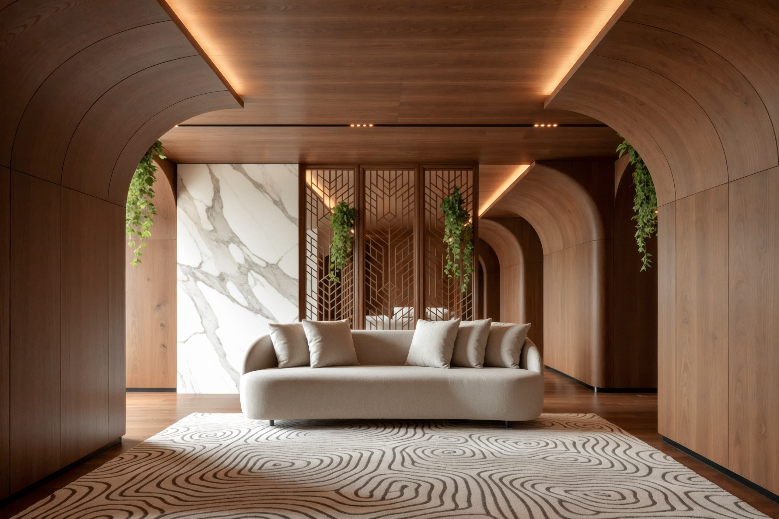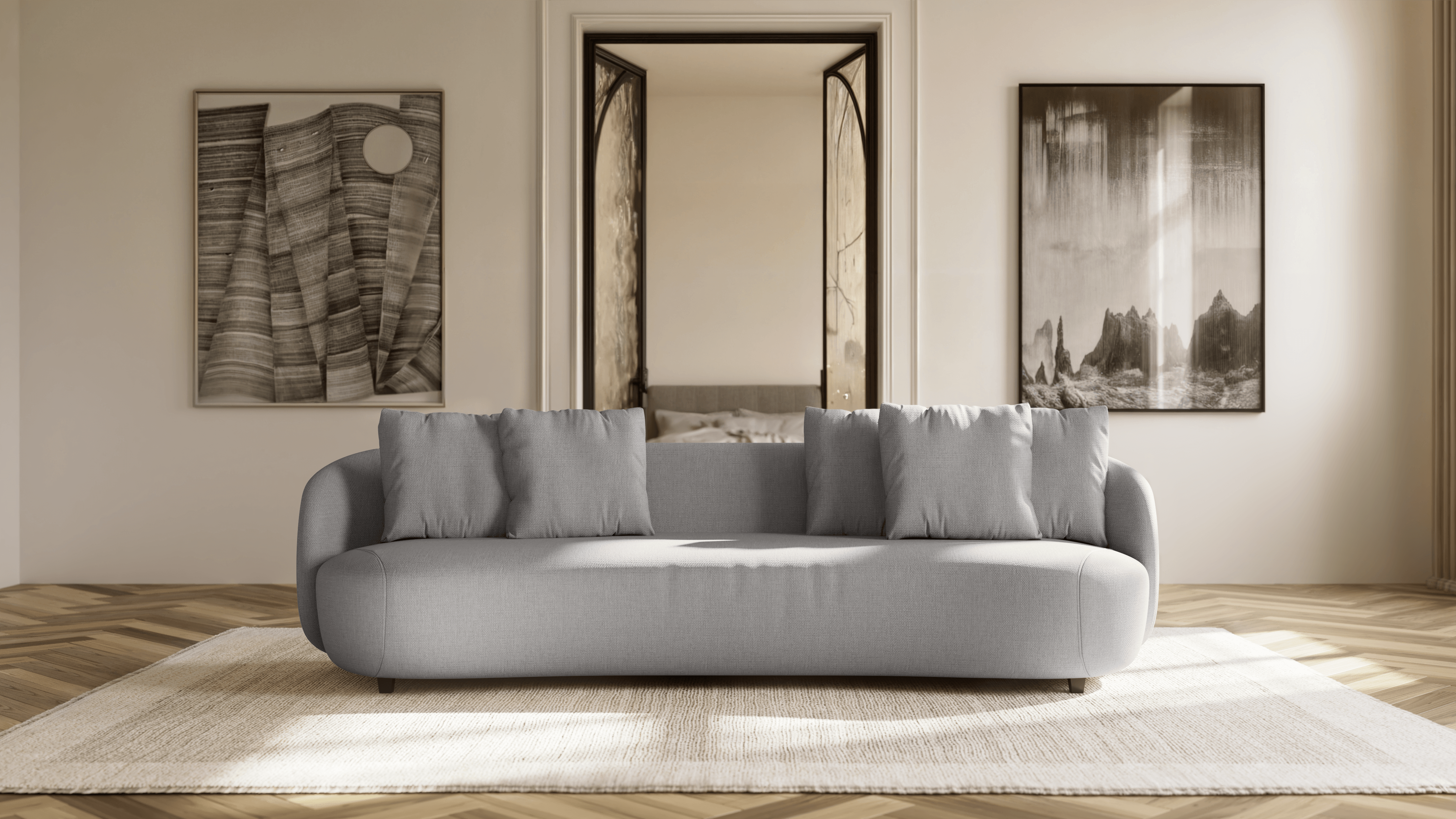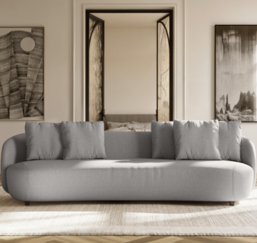 Com formas orgânicas e proporções generosas, o sofá Pluma traduz o conceito de conforto escultural.