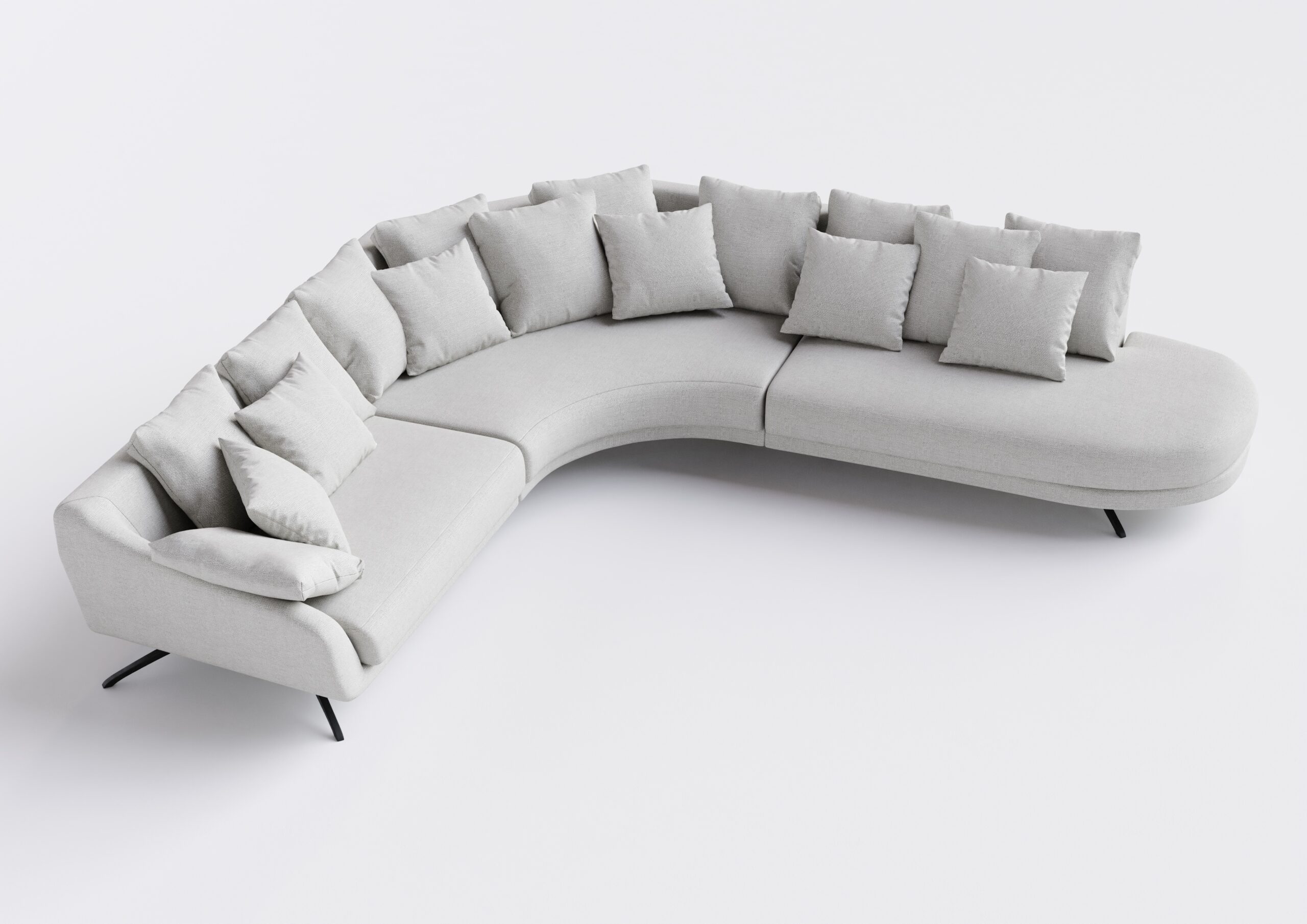 Com braços reclináveis, encosto com almofadas soltas e estrutura envolvente, o Sofá Solace proporciona uma experiência de conforto absoluto. Seu design curvo com base elevada e pés metálicos inclinados trazem leveza visual, enquanto o conjunto de almofadas convida ao relaxamento. É a combinação ideal de estilo contemporâneo e bem-estar.