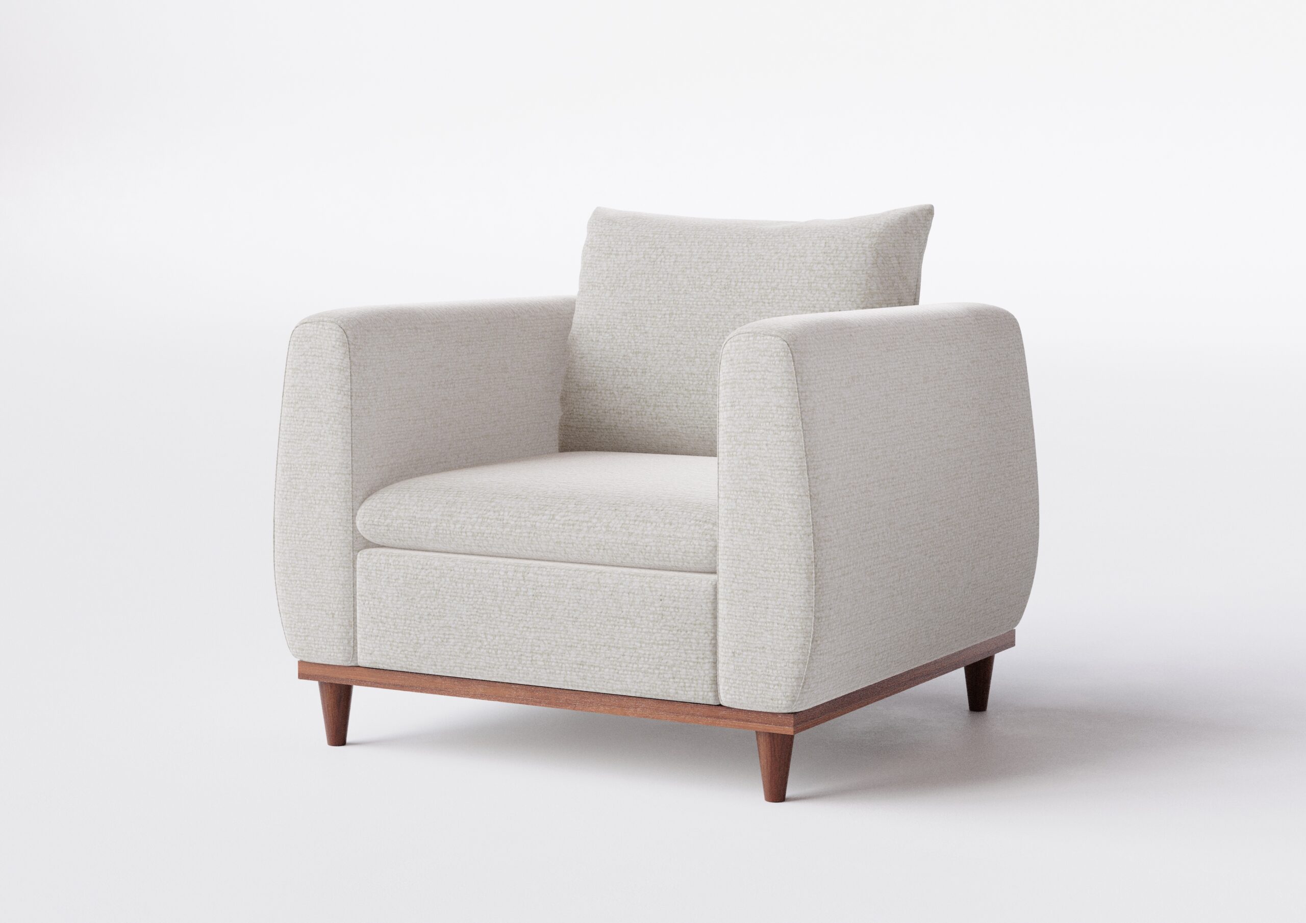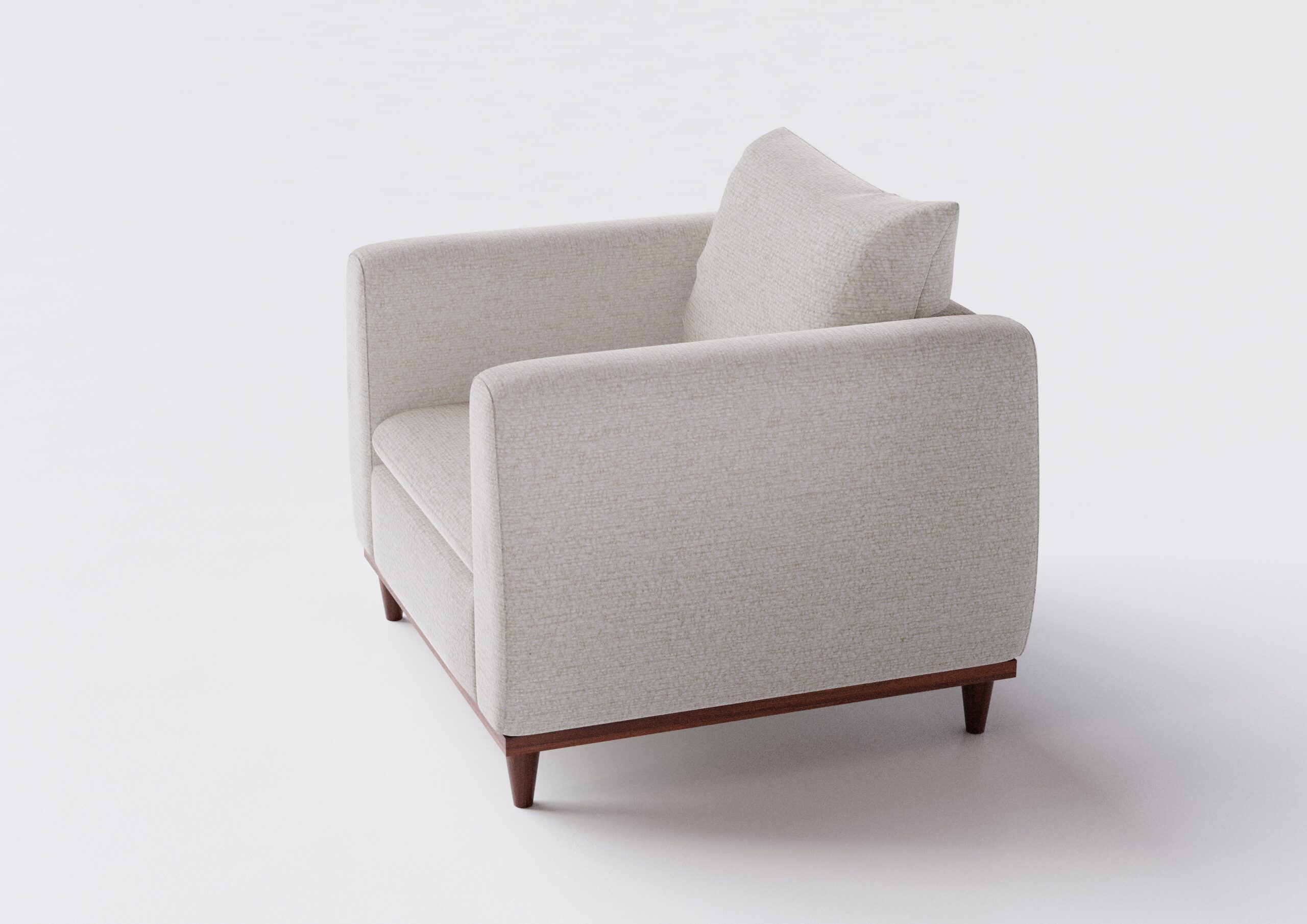 Encosto: Fixo, com almofadas soltas em fibra siliconizada, oferecendo conforto extra e visual elegante.