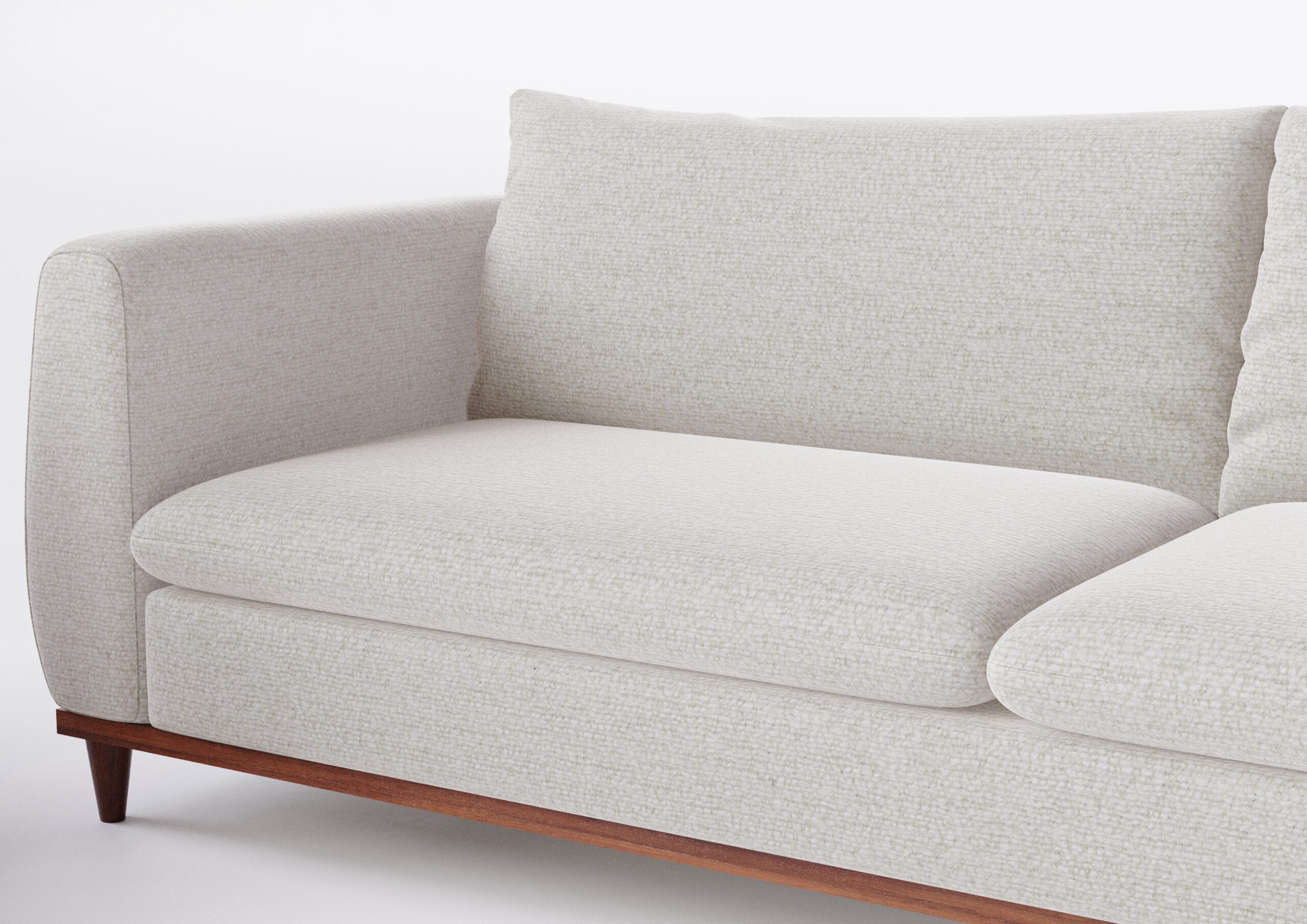 O Sofá Vicenzo apresenta traços elegantes e atemporais, com costuras verticais nas laterais que trazem charme e personalidade ao modelo. A base em madeira aparente reforça sua proposta refinada, enquanto os encostos soltos e almofadas proporcionam um conforto envolvente. Ideal para compor salas com estilo clássico-contemporâneo ou ambientes mais neutros com personalidade.